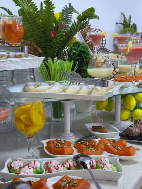 В санатории работает ресторан "Террас", где гости могут насладиться разнообразными блюдами азербайджанской и мировой кухни.